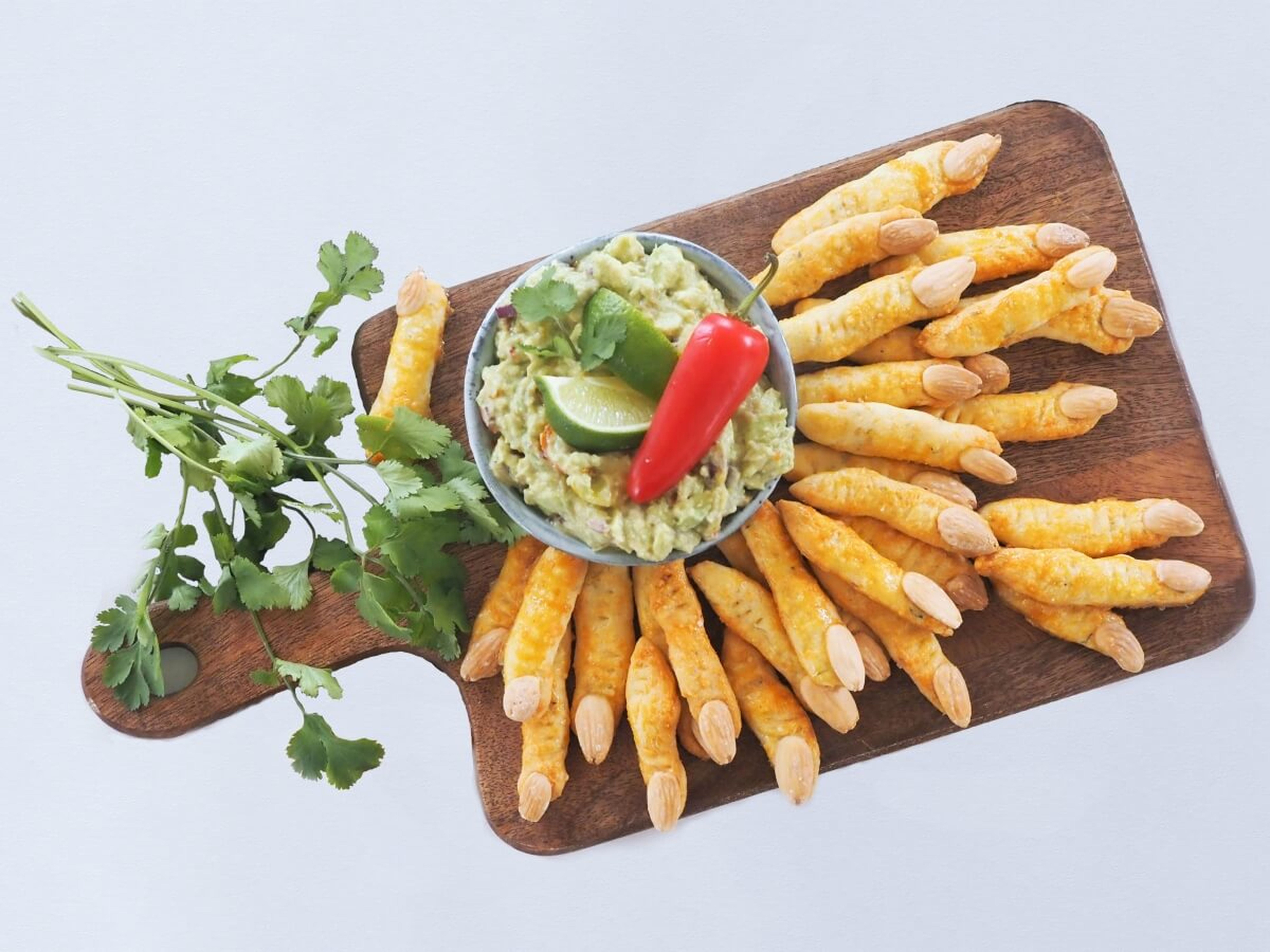 Ježibabí pařátky (sýrové tyčinky) s dipem guacamole